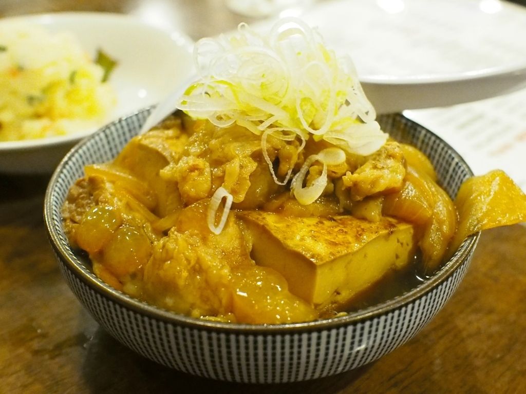 スジがあるお肉がじっくりと煮込まれた肉豆腐でありまして、そのトロンとしたスジの旨みが堪らなく印象的なのです