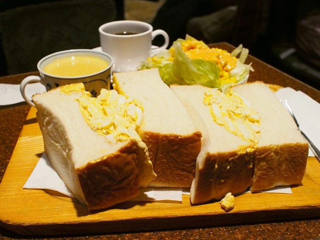 なんと半斤ほどあろうかというパンにはさまれたたっぷりの玉子サラダでありまして、そのビジュアルはこれまでに見たことも無いようなモノであります