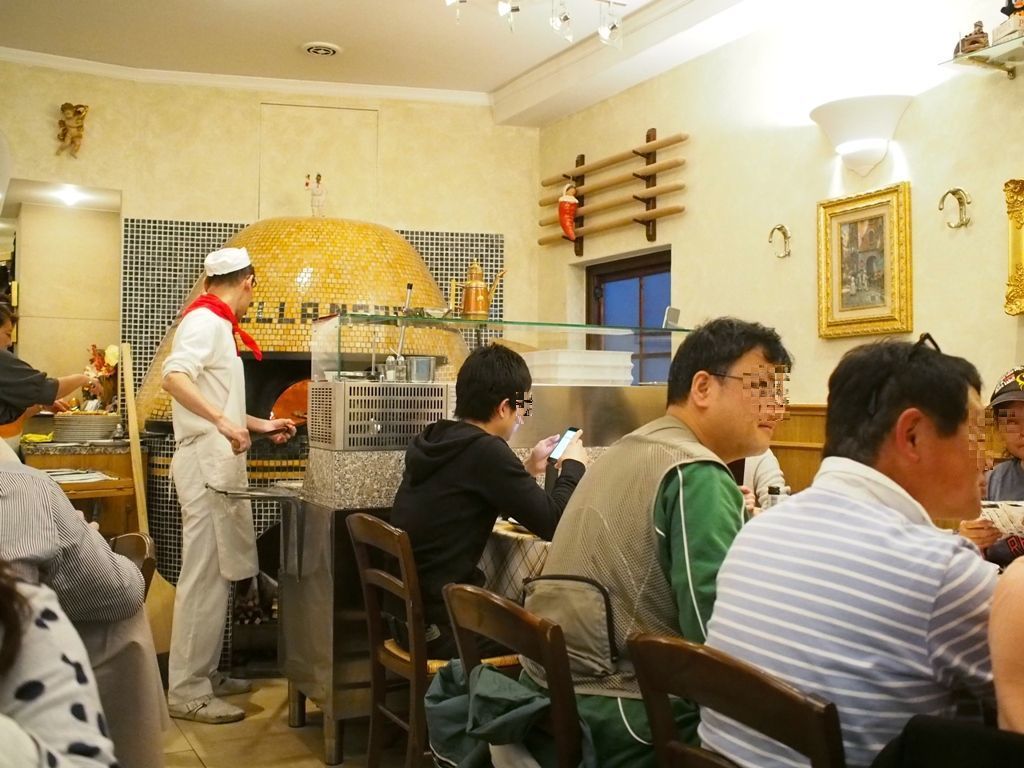お店の中央には薪で焼かれるピザ窯がありまして、そこで次々と焼き上げられるピッツァがとっても美味しそうであります