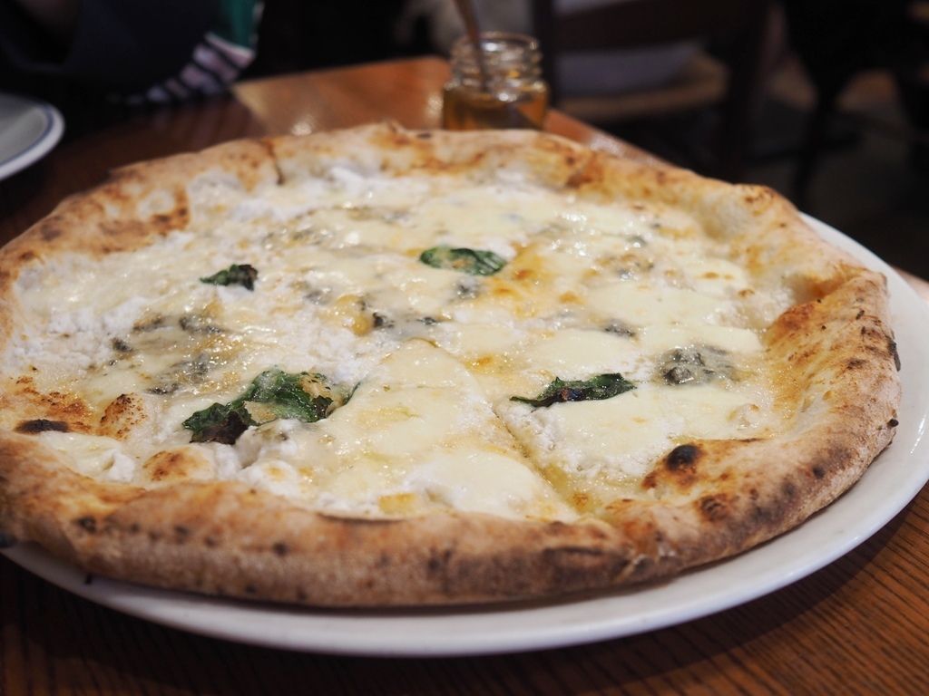 薪釜で焼き上げれる生地のサクッとした食感と香ばしさは本より、ゴルゴンゾーラやタレッジョと言った個性的なチーズの香りを楽しむことができますね