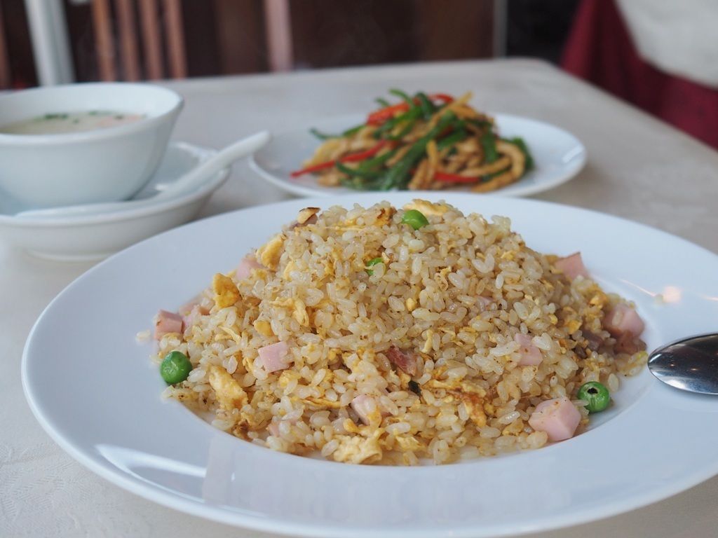 最もシンプルであろう「五目チャーハン」をいただきますと、程よく水分が飛ばされたパラパラのご飯と細かくカットされたチャーシューやハムがバランス良くお口に入って来きますね