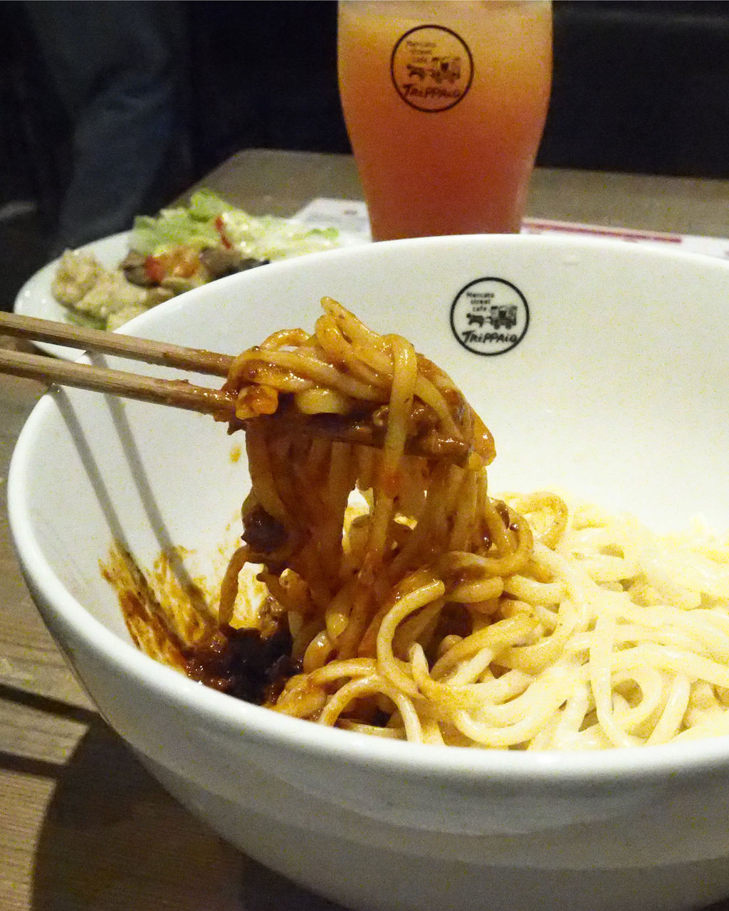 「日本一おいしいミートソース」の麺とソースをひっくり返したような「のっけ麺」