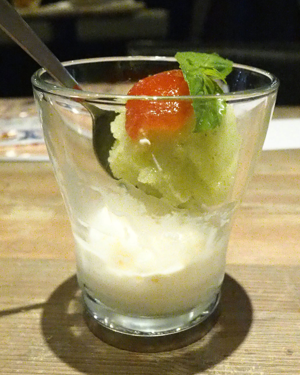 更にトマトジュレのトッピングがされて、デザート版カプレーゼの出来上がり