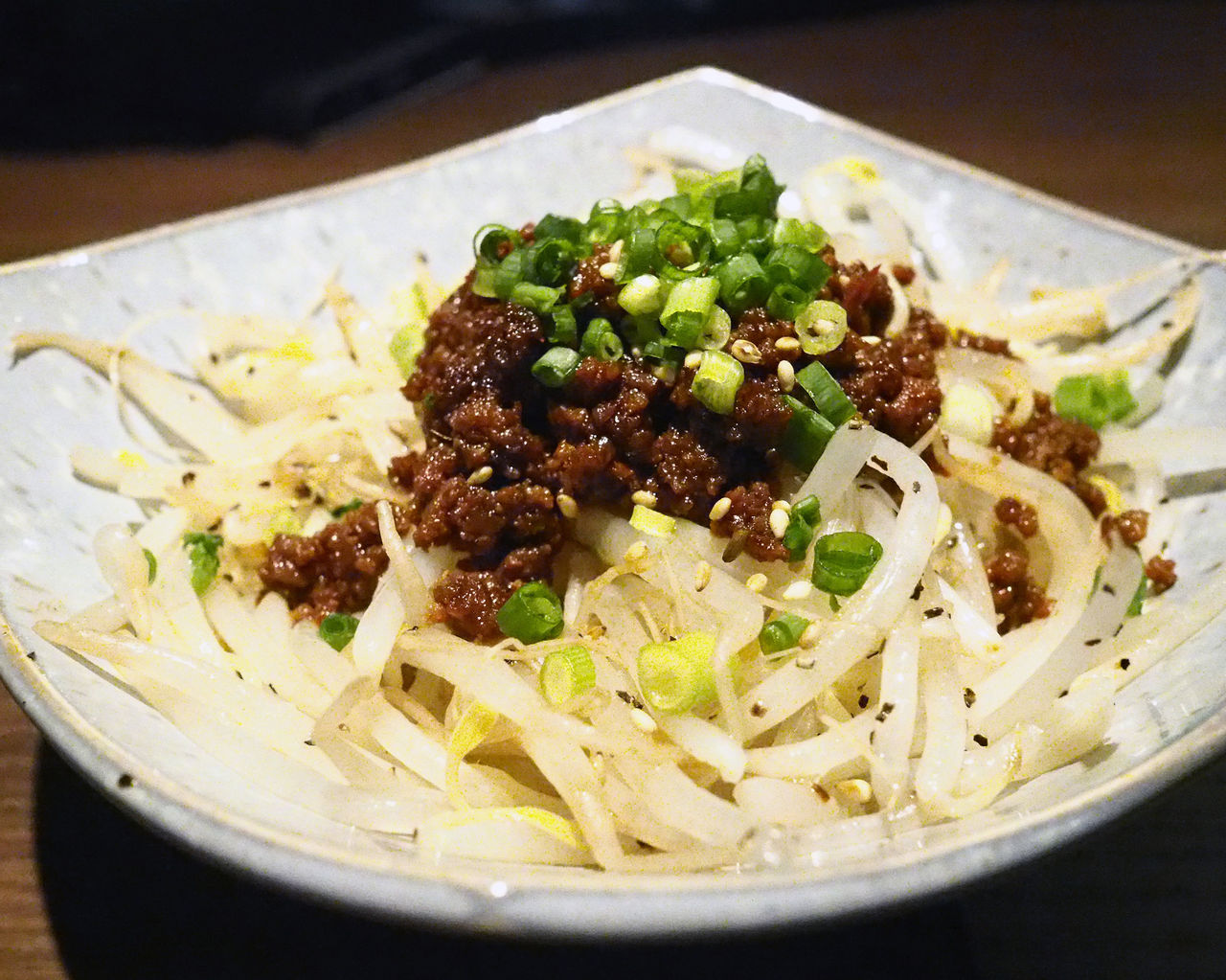 茹で上げたもやしに肉味噌を乗せただけと言うシンプルなモノなのですが、その肉味噌がなかなか良く出来ていますね