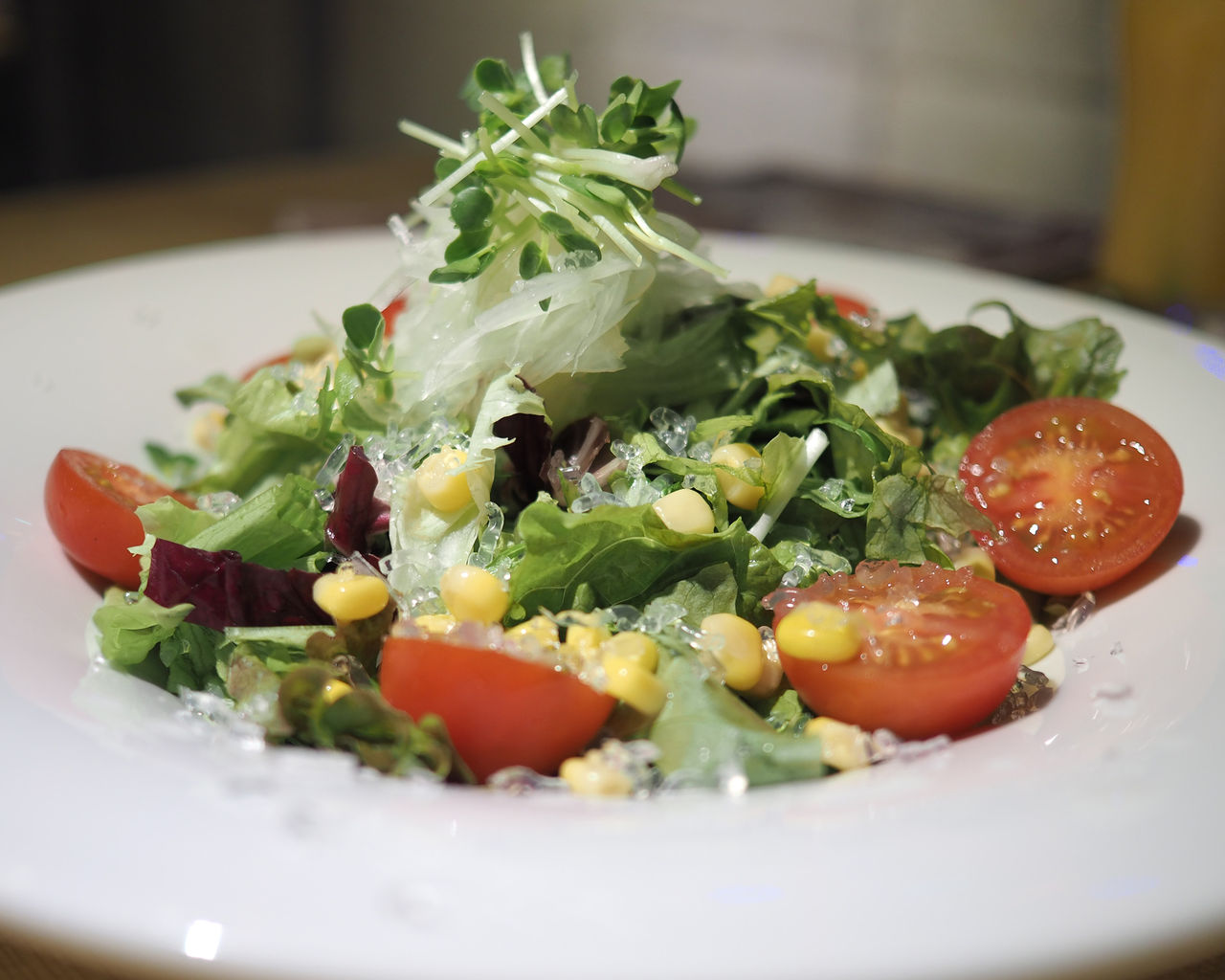 リンゴなどのフルーツを使った自家製ドレッシングがとってもおいしくて、たっぷりと盛られたサラダもペロリといただいちゃいました