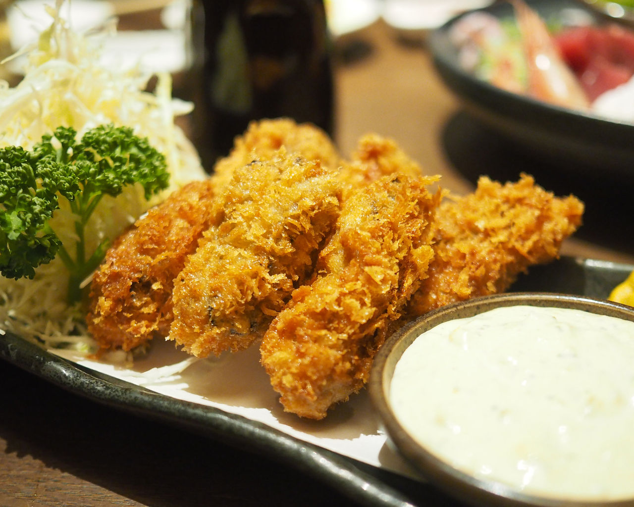 磯の香り溢れるジューシーな牡蠣がサクッとした衣に包まれていまして、ひと口でいただくとお口の中に溢れるジュースで火傷しちゃいそうですね