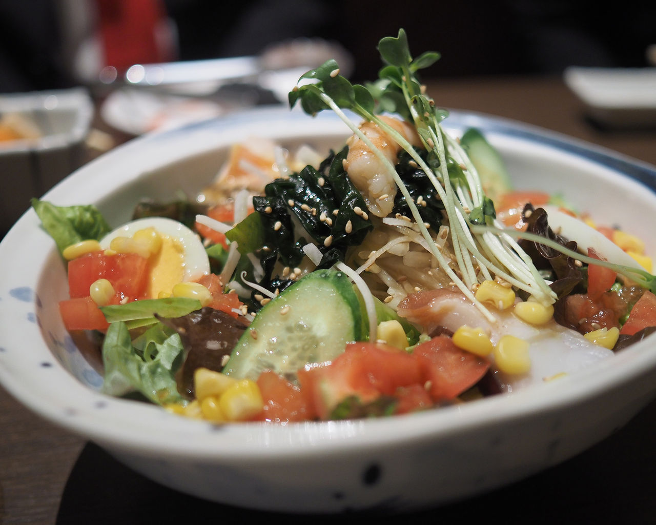 大根の細切りとリーフレタスをベースにトマトのコンカッセやコーン、それにタコや海老などの海鮮ものがバラバラと入って行っていることからのネーミングなのでしょうかね