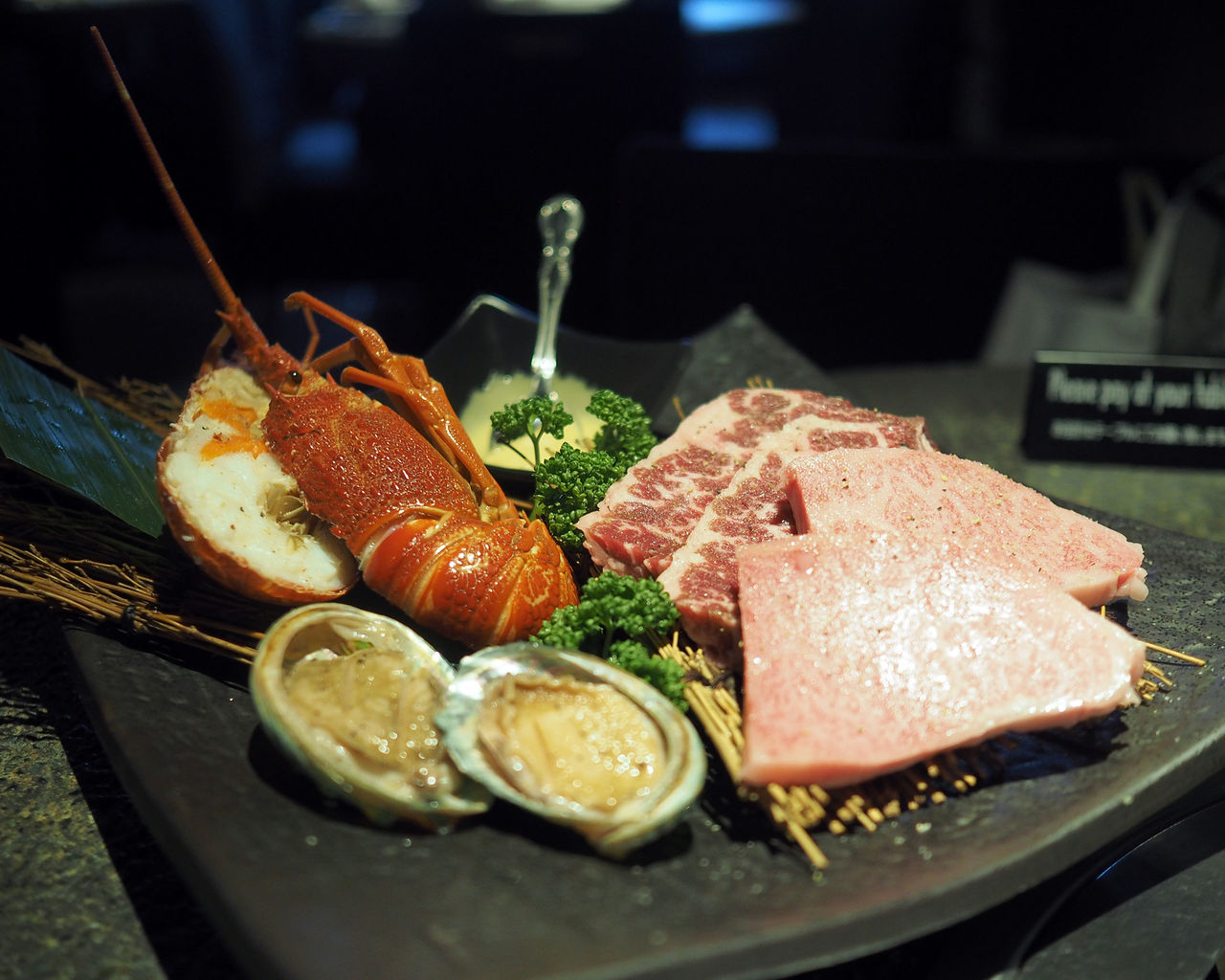 続いては、このコースのメインとなるロブスターや小アワビ、それに特カルビ、特ハラミの盛り込みが登場します