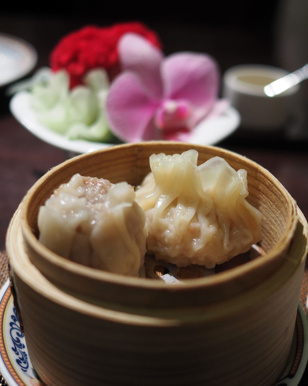 そしてパリパリっと揚がった皮に熱々の具材がおいしい春巻き、たっぷりの肉が詰まったシウマイ、それにモチッとした皮で包まれた蒸し餃子の三種の点心をいただきまして…