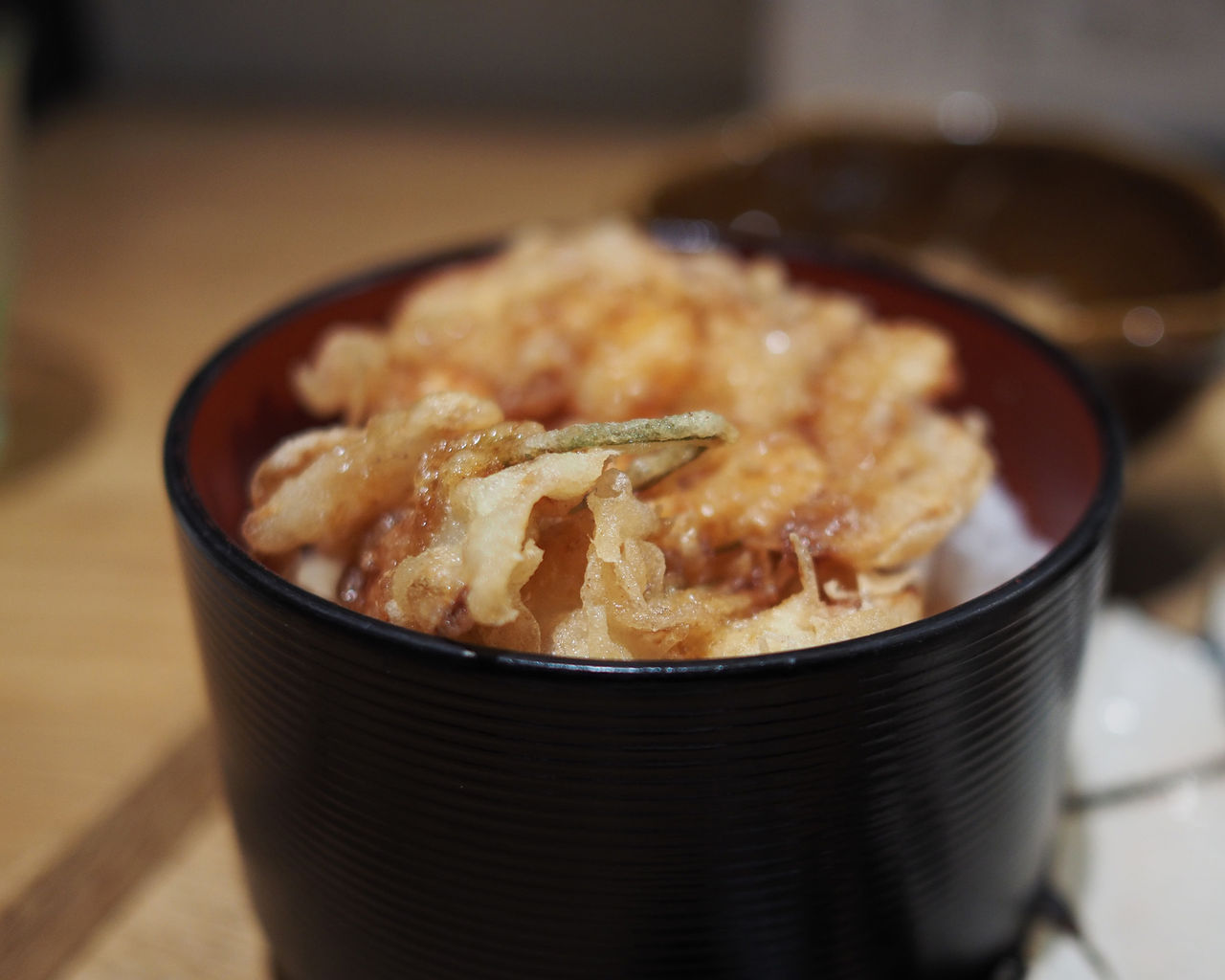 西京焼きの味噌がご飯によく合うのですが、サクッと揚がったかき揚げの魅力も捨てがたく、今回はかき揚げ丼をいただきます