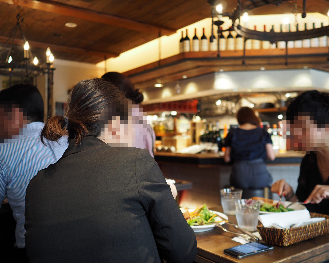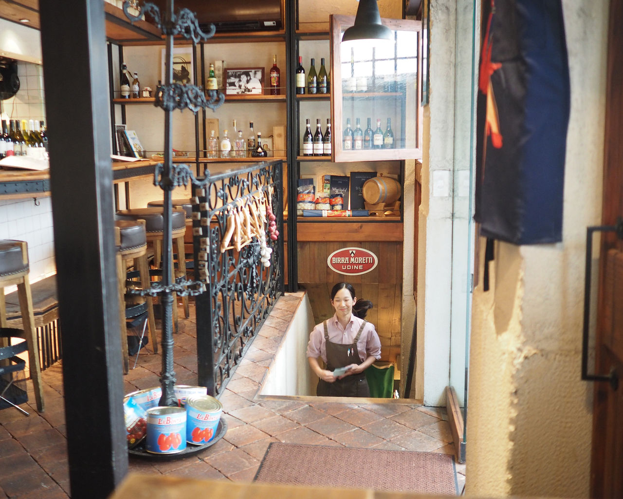 外から見ていたときにはカウンターをメインとした小さなお店だと思っていたのですが、地下にも客席があるようで…