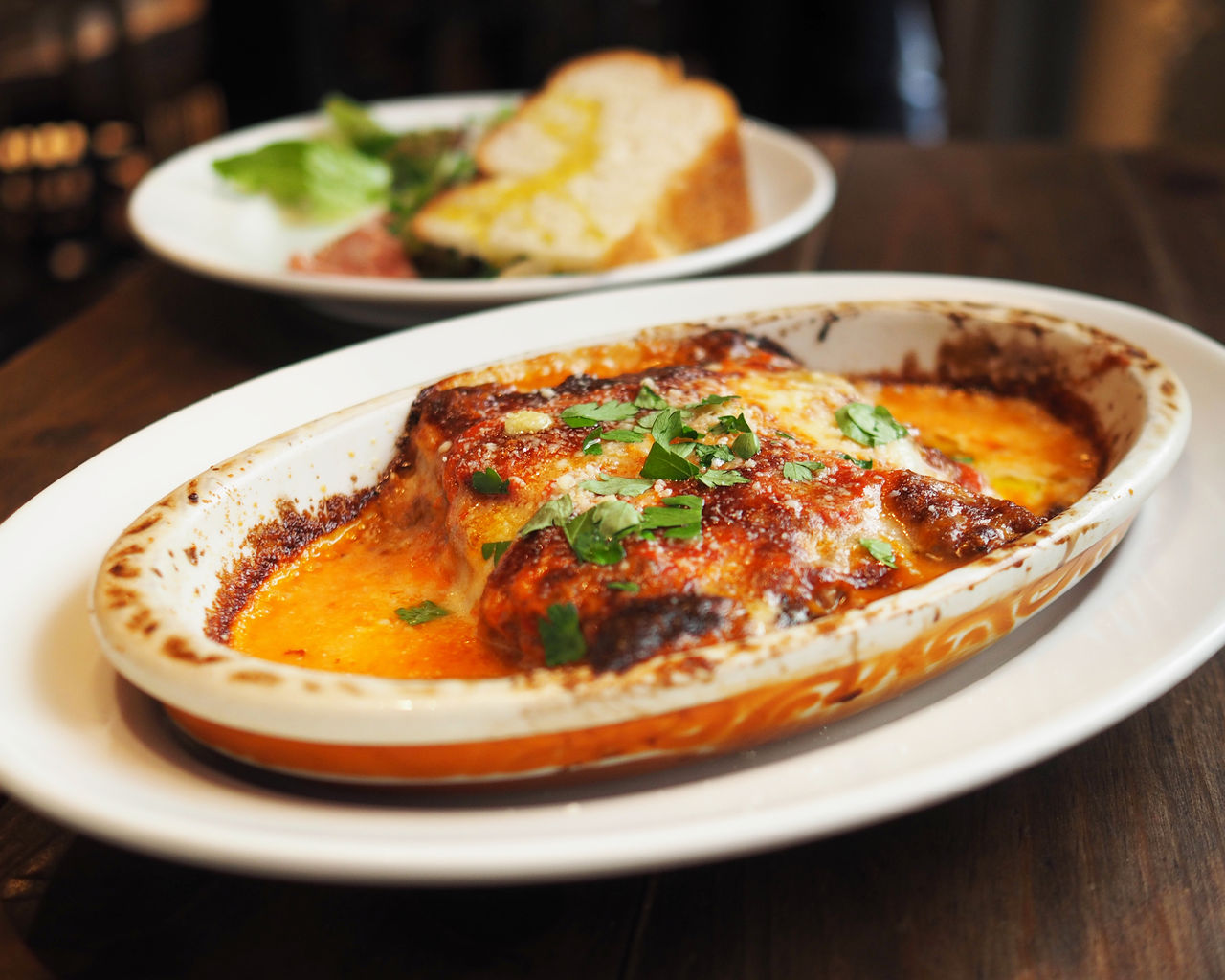 ちょっと大きめなグラタン皿の中央に鎮座するラザニア