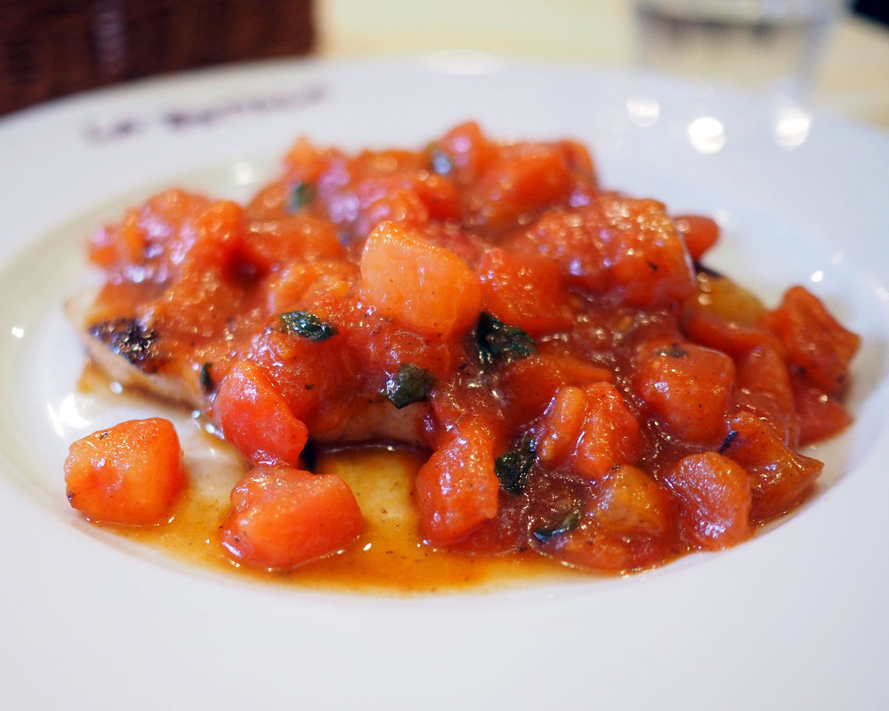 「的ダイのグリル 生トマトとバジリコのソース」