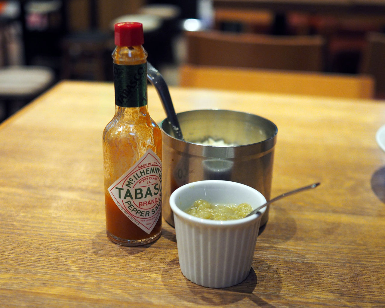 こちらのお店ではそんなところにまでもこだわりがあるようで、提供されるチーズはは酪農の国オランダで作られるエダムチーズでありますし、タバスコだけでなく自家製のハラペーニョソースも用意されていて…