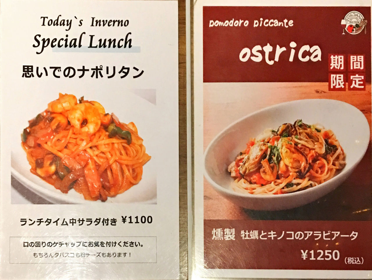 今日のおすすめパスタは「ナポリタン」であるとのことですし、期間限定だという「牡蠣ときのこのアラビアータ」にも惹かれますし、さらには契約農園から取り寄せるというバジルを使った「ジェノベーゼ」も捨て難いと、散々悩まされることとなったのであります