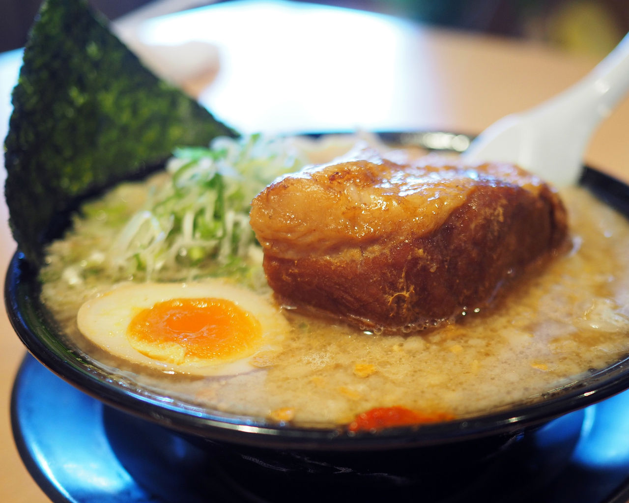こちらの基本メニューであるとんこつラーメンに180gほどと思われるチャーシューの塊がどーんと乗せられたものでありまして…