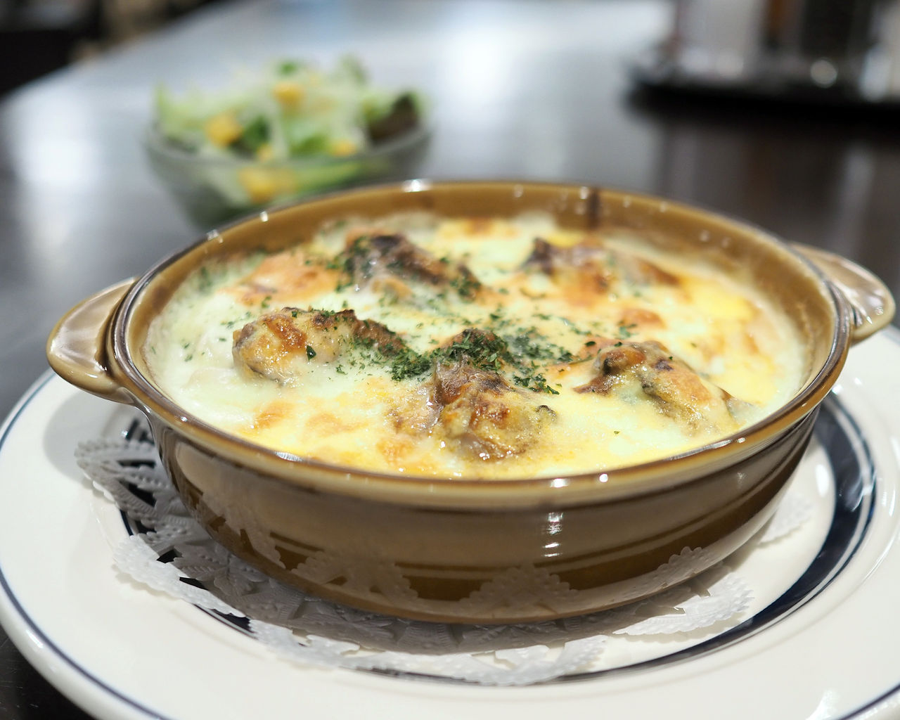 時折降る小雨での冷えこみもあって、身体が冷え切っていたワタシは旬の味覚なるメニューにあった「カキドリア」に心奪われます