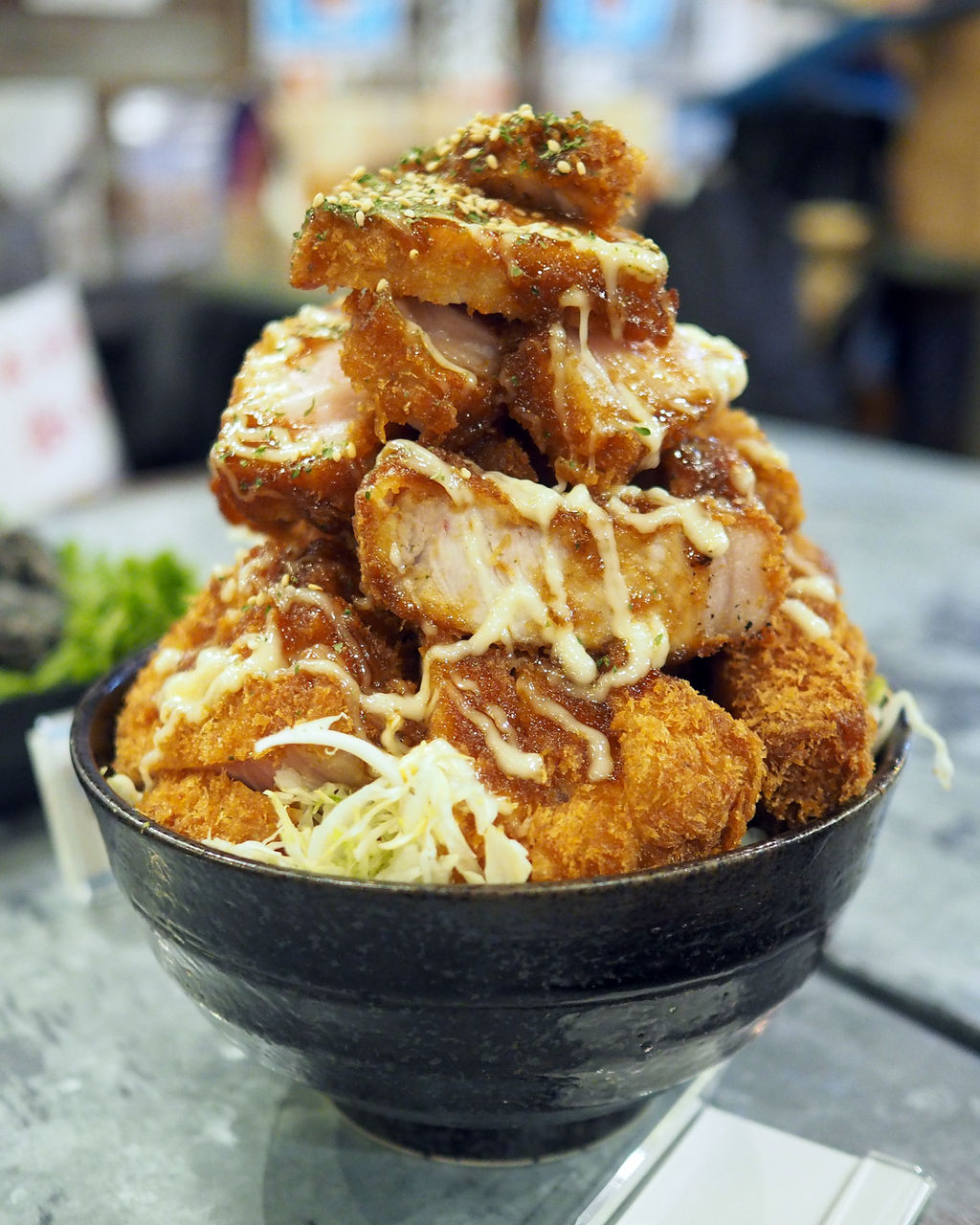 そんな彼の勝負メシの中からその中から、卵チャーハン、豚からあげ、鶏から揚げ、豚キムチめを贅沢に4段積み重ねたというものであります