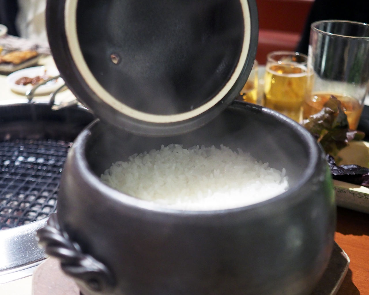 土鍋で炊き上げられたご飯と一緒にいただくカルビスープにはゴロゴロと大きくカットされたお肉が入っていまして…