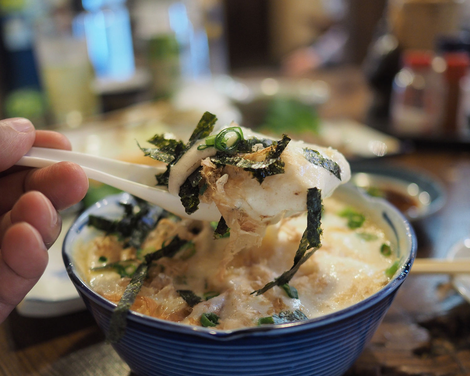 こちらのお店の名物商品でありまして、注文が入ってからすりおろした大和芋をすり鉢で泡立てるという手間がかかる商品であるために、忙しい時などには提供されるまでに時間が掛かってしまうこともしばしばでありますから、今回も入店してすぐに注文しておいたのであります