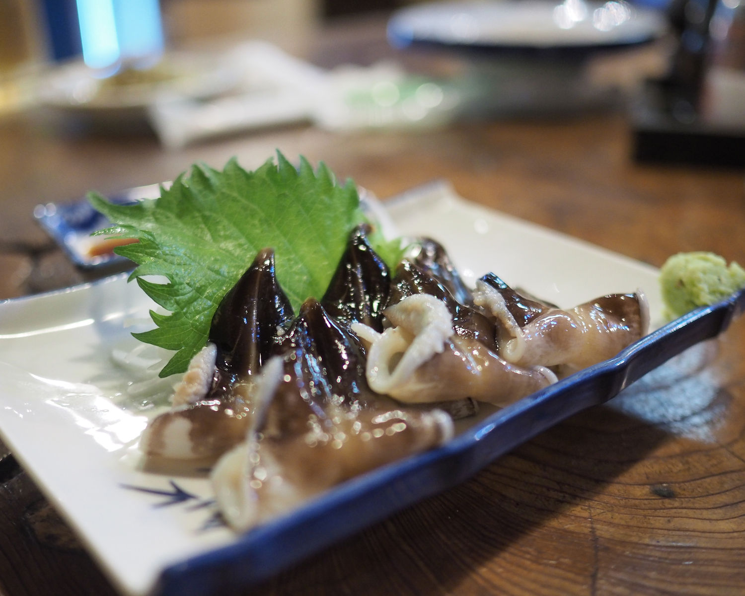 素材そのものにほのかな甘みがありますので、お醤油は最低限にとどめワサビの香りでいただきます